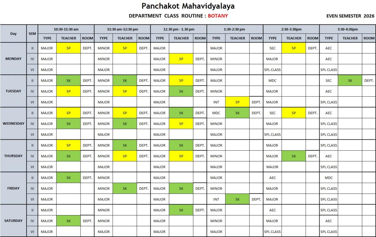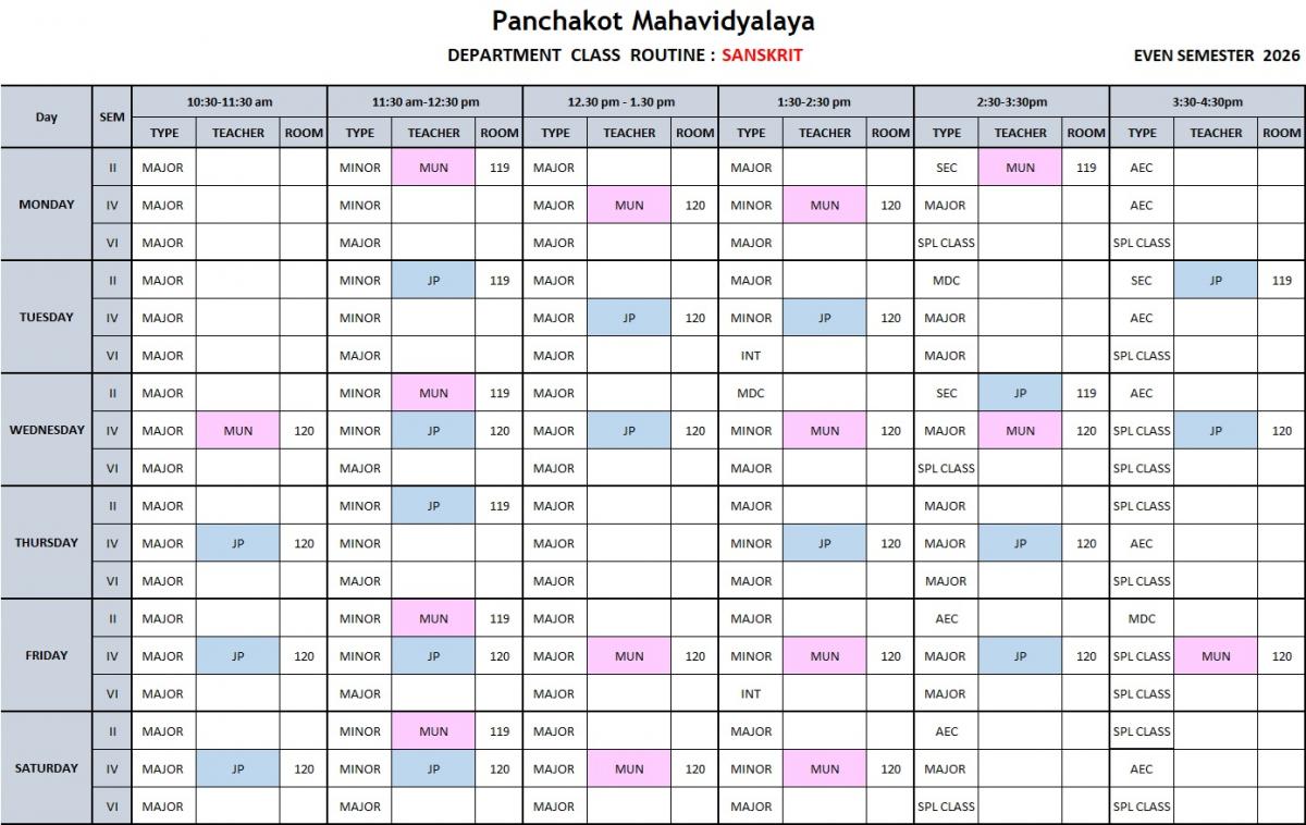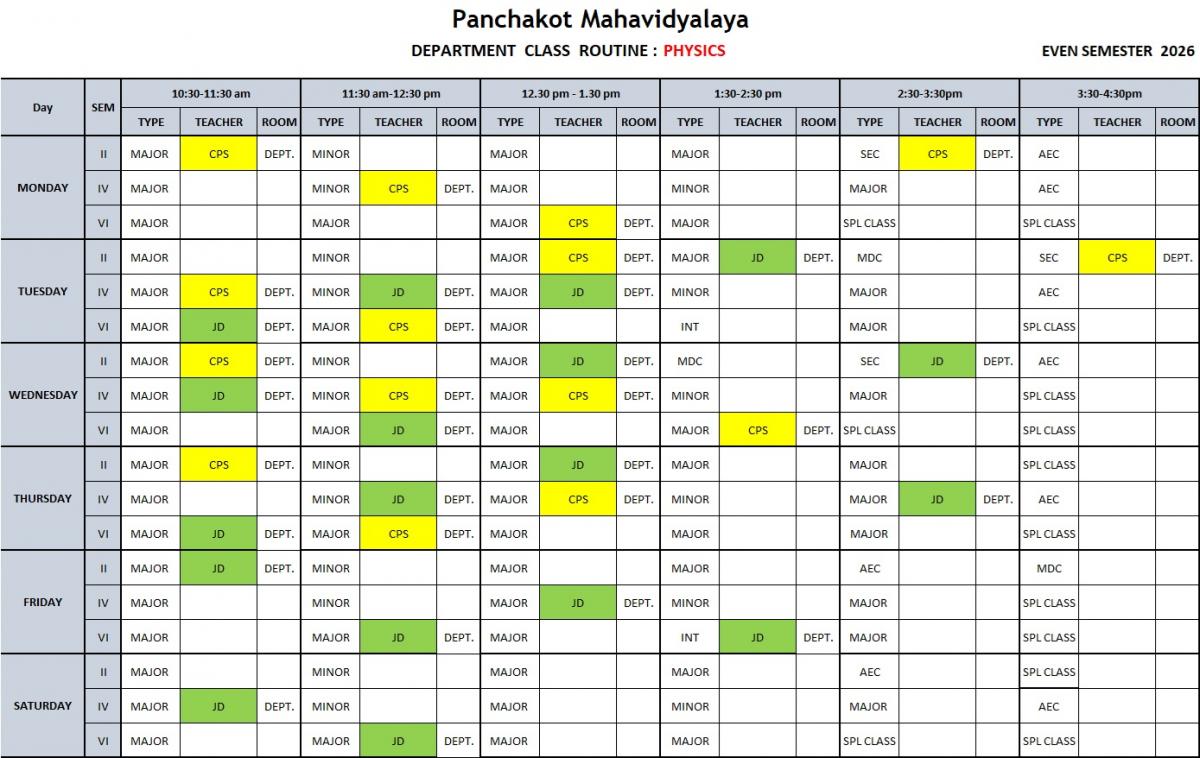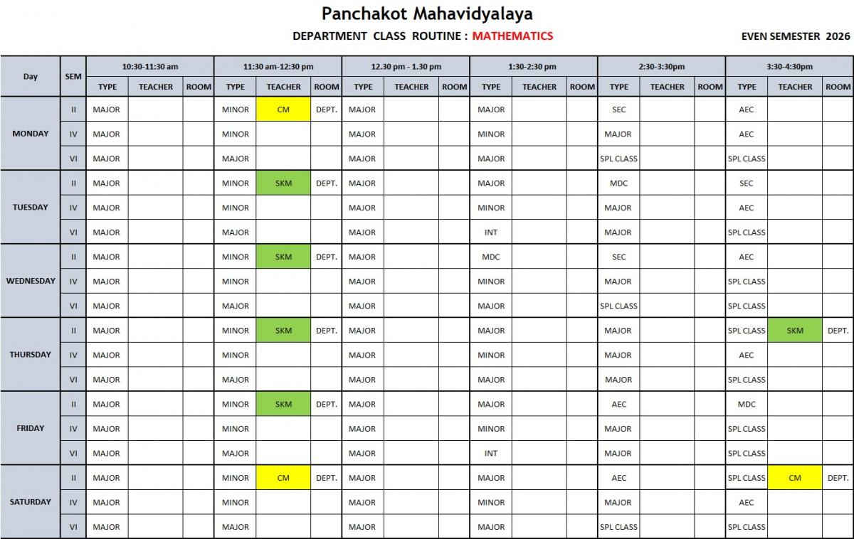 Click to view Department Routine